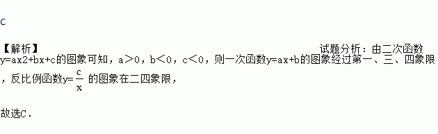 二次函数y=ax2+bx+c(a,b,c为常数且a≠0)的图象如图所示,则一次函数y=ax+b与反比例函数y=的图象可能是( )