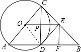 分析 证明BC是⊙O的切线,进而得到P是CD的中点,利用中位线定理求出OE∥AB,据此判断A正确;证明E是BC的中点,利用∠CDB是直角,据此得到BC=2DE,判断B选项正确;证明△ACD∽△EDF,即可得到AC•DF=DE•CD,判断C选项正确;只有当PE=PD时DE才等于$\sqrt{2}$PD,据此判断D选项错误.