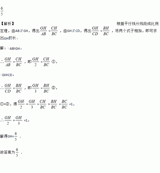 如图,AB∥GH∥CD,点H在BC上,AC与BD交于点G,AB=2,CD=3,则GH的长为 .