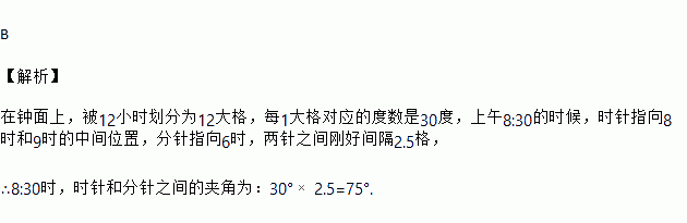在时刻8:30,时钟上的时针和分针之间的夹角为( )