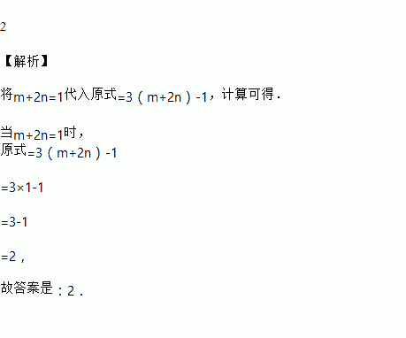 已知m+2n=1,则多项式3m+6n﹣1的值是_____.
