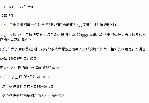 已知,一个多边形的每一个外角都是它相邻的内角的.试求出:(1)这个多边形的每一个外角的度数;(2)求这个多边形的内角和.