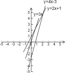 在同一坐标系中作出y=2x+1,y=3x,y=4x-3的图象;在上述三个函数的图象中,哪一个函数的值先达到30?