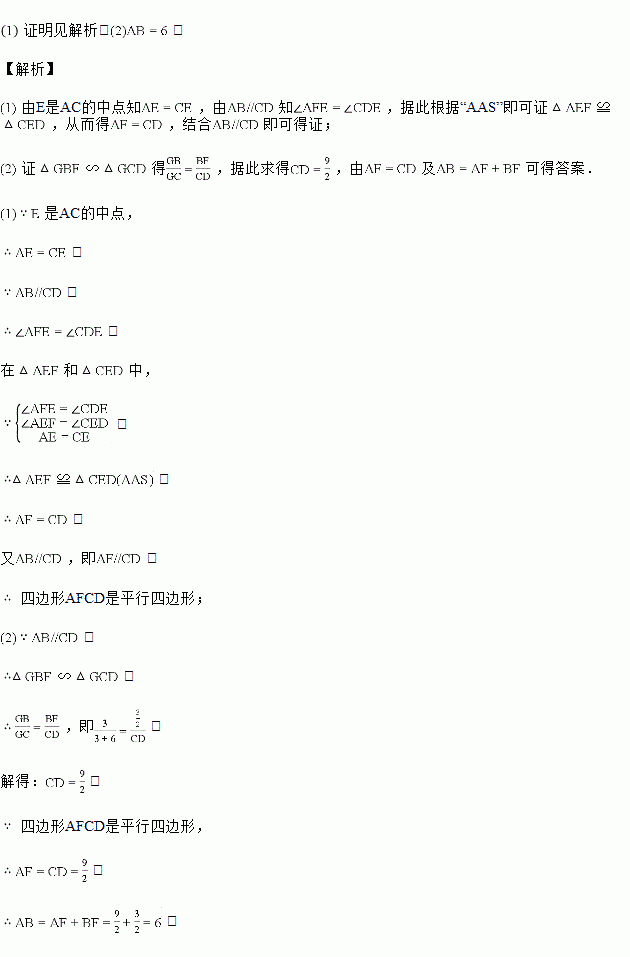 如图,在中,过点C作,E是AC的中点,连接DE并延长,交AB于点F,交CB的延长线于点G,连接AD,CF.