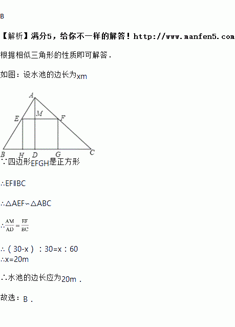 某校计划在一块三角形的空地上修建一个面积最大的正方形水池,使得水池的一边在的边上,中边,高,则水池的边长应为( )