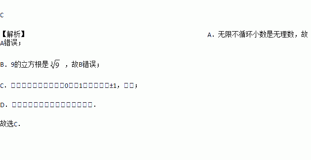 A. 无限小数都是无理数 B. 9的立方根是3