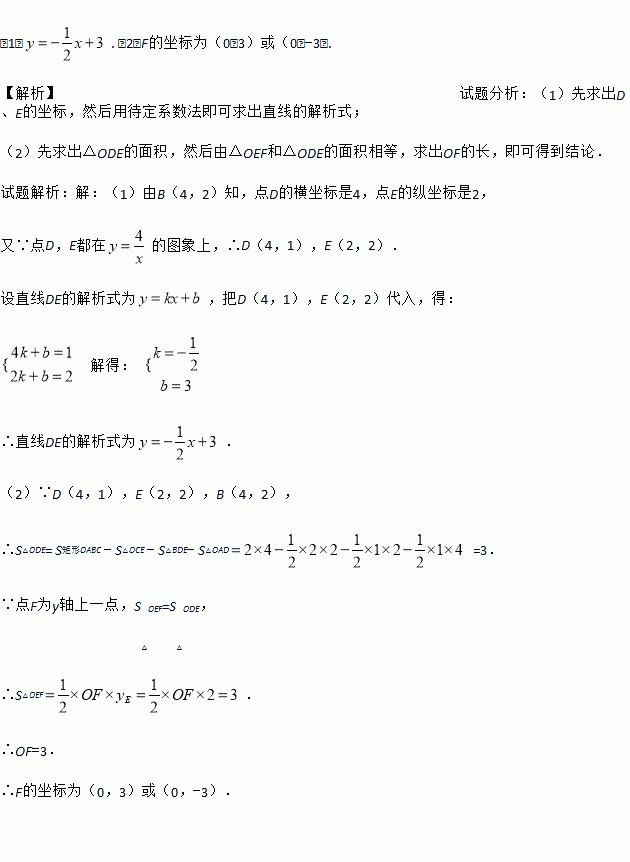 (2)若点F为y轴上一点,△OEF和△ODE的面积相等,求点F的坐标。
