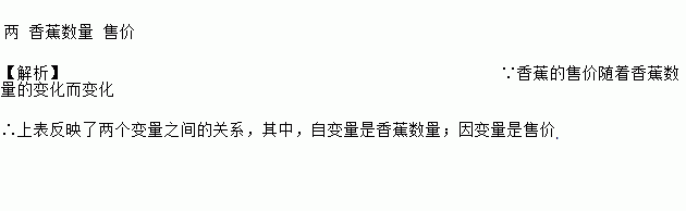 某水果店卖出的香蕉数量(千克)与售价(元)之间的关系如表: