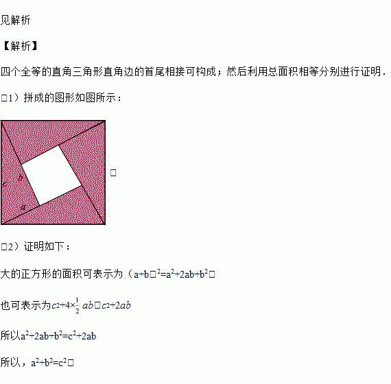 如图所示是用硬纸板做成的四个完全相同的直角三角形和一个边长为c的正方形,直角三角形两条直角边的长分别是a,b,斜边的长为c,请你将它们拼成一个能推导勾股定理的图形.