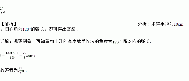 一个滑轮起重装置如图所示,滑轮的半径是10cm,当滑轮的一条半径OA绕轴心O按逆时针方向旋转的角度为时,重物上升______ 结果保留.