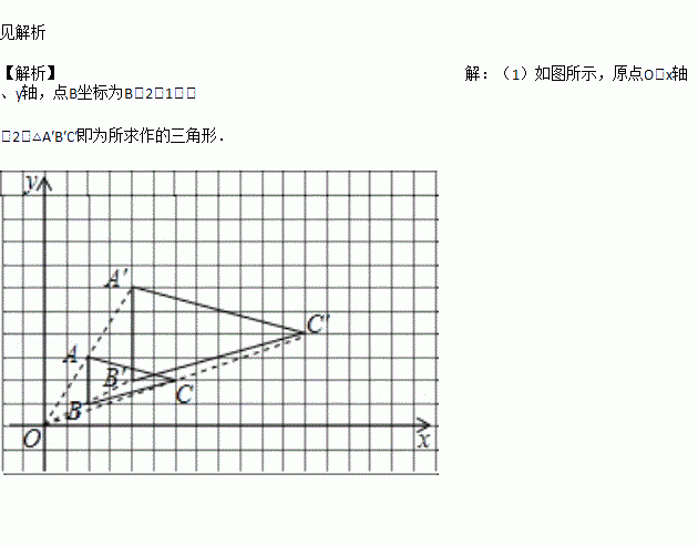 (2)以原点O为位似中心,相似比为2:1,在第一象限内将△ABC放大,画出放大后的图形△A′B′C′.