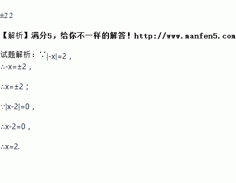 若|-x|=2,则x=________;若|x-2|=0,则x=________;