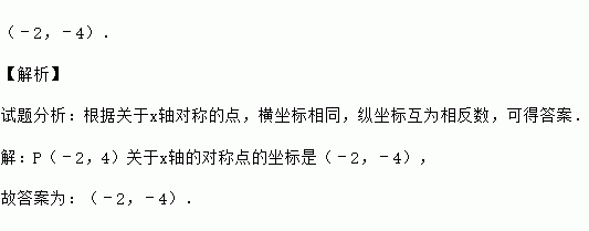 点P(﹣2,4)关于x轴的对称点的坐标是 .