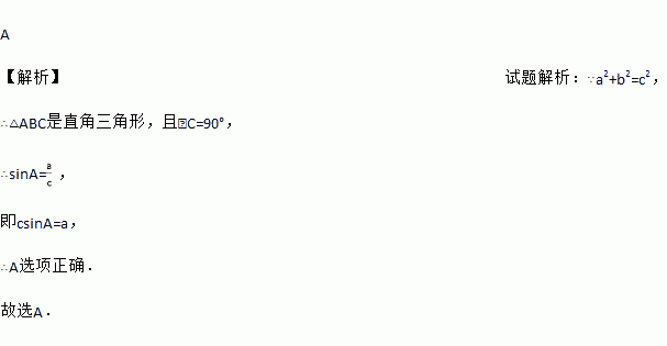 A. csinA=a B. bcosB=c C. atanA=b D. ctanB=b