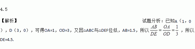 如图,在平面直角坐标系中,已知A(1,0),D(3,0),△ABC与△DEF位似,原点O是位似中心.若AB=1.5,则DE=_____.