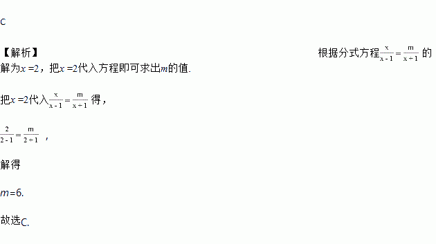 若关于x的分式方程的解为x =2,则m的值为( ) .