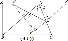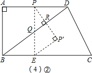 £¨4£©¢ÙÈçͼ£¬µ±EÔÚCDÉÏʱ£¬ÑÓ³¤AD½»P¡äEµÄÑÓ³¤ÏßÓÚFµã£¬ÏÔÈ»DQÊÇ¡÷PEFµÄÖÐλÏߣ¬
