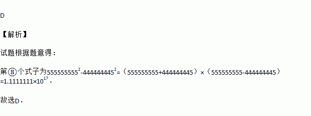 现有一列式子:①552-452;②5552-4452;③55552-44452…则第⑧个式子的计算结果用科学记数法可表示为( )