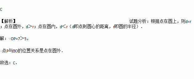 已知⊙O的半径为5,点P到圆心O的距离为7,那么点P与⊙O的位置关系是( )