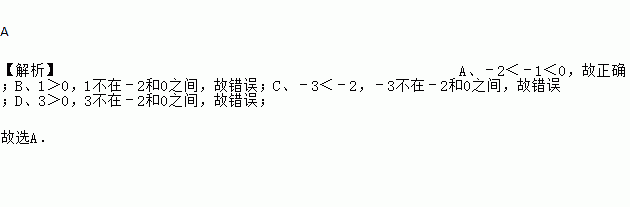 A 【解析】A、﹣2<﹣1<0,故正确;B、1>0,1不在﹣2和0之间,故错误;C、﹣3<﹣2,﹣3不在﹣2和0之间,故错误;D、3>0,3不在﹣2和0之间,故错误; 故选A.