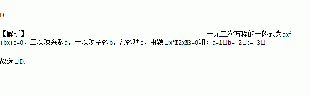 一元二次方程x2﹣2x﹣3=0的二次项系数、一次项系数、常数项分别是( )