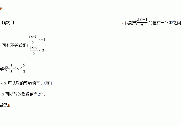 若使代数式的值在-1和2之间,可以取的整数有( )