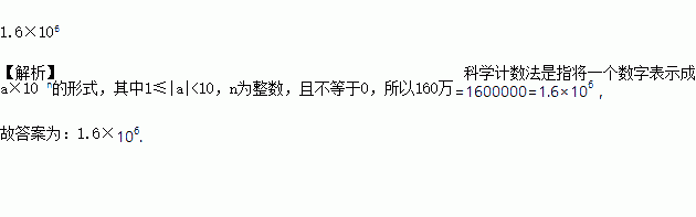 2016年12月16日,一场雾霾席卷华夏大地,大约有160万平方千米的范围被雾霾包裹,其中160万用科学计数法可以表示为_______________.
