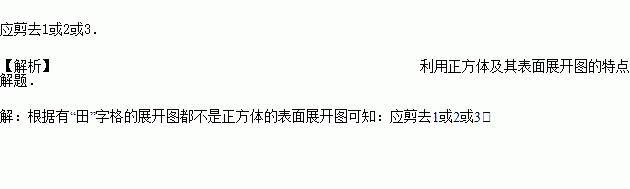 将图中剪去一个正方形,使剩余的部分恰好能折成一个正方体,问应剪去几号小正方形?写出所有可能的情况.