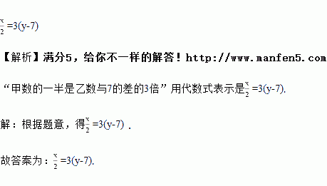 已知甲数的一半是乙数与7的差的3倍,设甲数为x,乙数为y,则可列出二元一次方程______________.