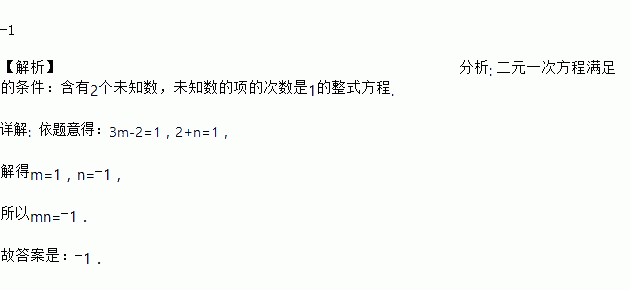 如果3x3m﹣2﹣2y2+n+10=0是二元一次方程,那么mn= __________