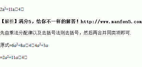 化简:2(3a2+4a﹣2)﹣(4a2﹣3a)