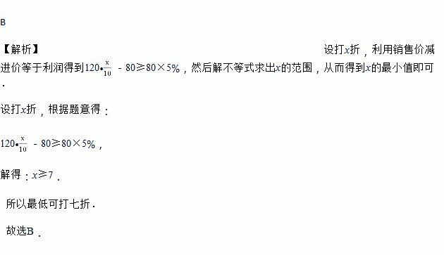某种商品的进价为80元,出售时标价为120元,后来由于该商品积压,商店准备打折出售,但要保证利润率不低于5%,则至多可打( )