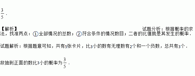 .将它们背面朝上洗匀后,从中随机抽取一张卡片,则其正面的数比3小的概率是___________