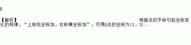 把点A(-2,1)向上平移2个单位,再向右平移3个单位后得到B,点B的坐标是 ( )
