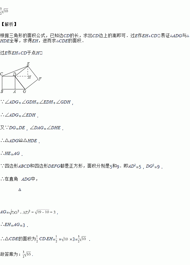 如图,点A在线段BG上,四边形ABCD和四边形DEFG都是正方形,面积分别是10和19,则△CDE的面积为_____________.