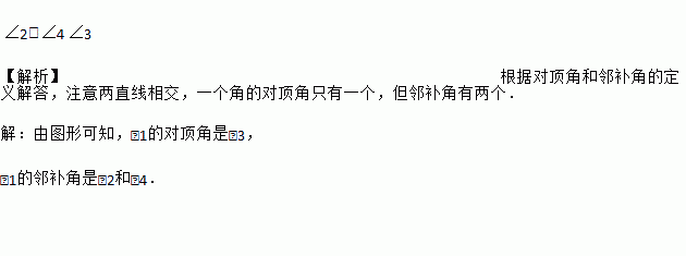 如图所示,AB与CD相交所成的四个角中,∠1的邻补角是__________,∠1的对顶角是__________.