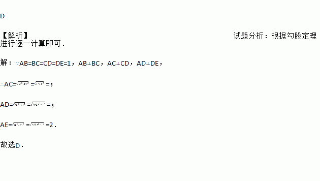 如图所示,AB=BC=CD=DE=1,AB⊥BC,AC⊥CD,AD⊥DE,则AE=( )