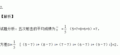 在一次射击训练中,某位选手五次射击的环数分别为5,8,7,6,9.则这位选手五次射击环数的方差为 .