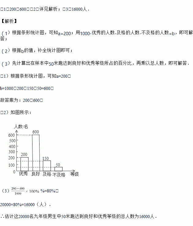 课题小组从某市20000名九年级男生中,随机抽取了1000名进行50米跑测试,并根据测试结果绘制了如下尚不完整的统计图表.