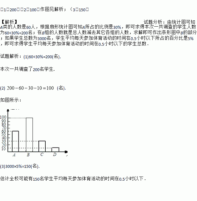 (3)若该校有3000名学生,你估计全校可能有多少名学生平均每天参加体育活动的时间在0.5小时以下?