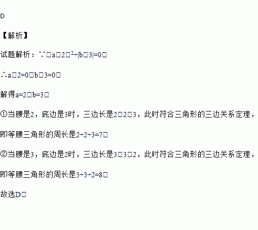若(a﹣2)2+|b﹣3|=0,则以a、b为边长的等腰三角形的周长为( )