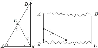 (2)现有一长方形木块的残留部分如图,其中AB,CD整齐且平行,BC,AD是参差不齐的毛边.请你在毛边附近用尺规画一条与AB,CD都垂直的边(不写作法,保留作图痕迹);