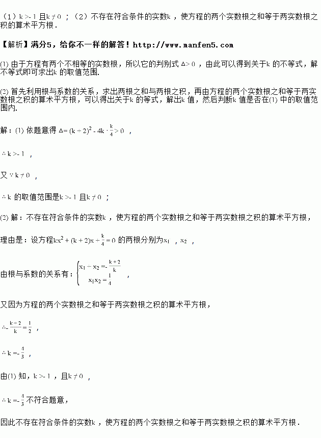 ,使方程的两个实数根之和等于两实数根之积的算术平方根?若存在,求出![]()