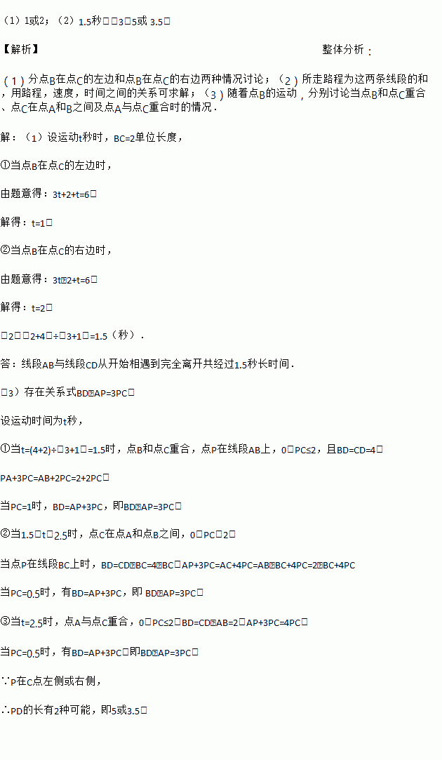 (3)P是线段AB上一点,当B点运动到线段CD上,且点P不在线段CD上时,是否存在关系式BD﹣AP=3PC.若存在,求线段PD的长;若不存在,请说明理由.
