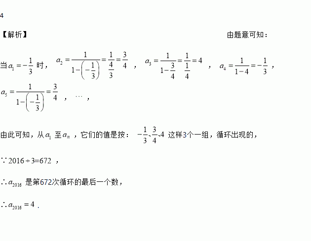 是不为1的有理数,我们把称为的差倒数.如: 的差倒数是.已知, 是的差倒数, 是的差倒数, 是的差倒数,…,以此类推,则___________.