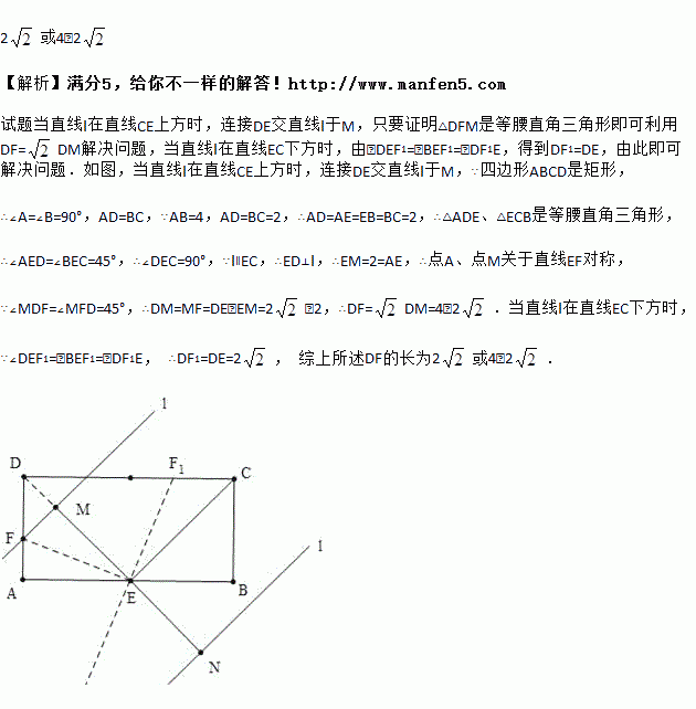 与直线EC之间的距离为2,点F在矩形ABCD边上,将矩形ABCD沿直线EF折叠,使点A恰好落在直线![]()