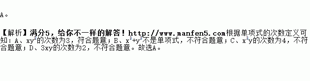 A. xy2 B.x3+y3 C.x3y D.3xy