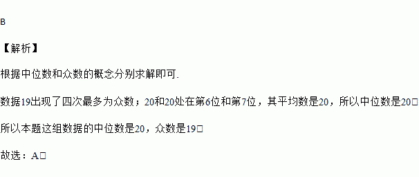 A. 19,20 B. 19,19 C. 19,20.5 D. 20,19