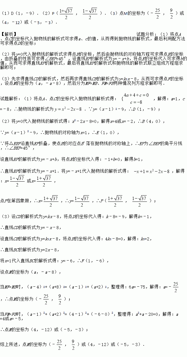 如图,抛物线y=ax2﹣2x+c(a≠0)与x轴、y轴分别交于点A,B,C三点,已知点A(﹣2,0),点C(0,﹣8),点D是抛物线的顶点.