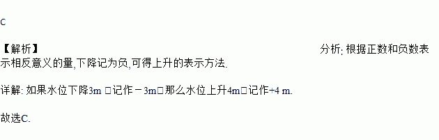 如果水位下降3m ,记作-3m,那么水位上升4m,记作( )